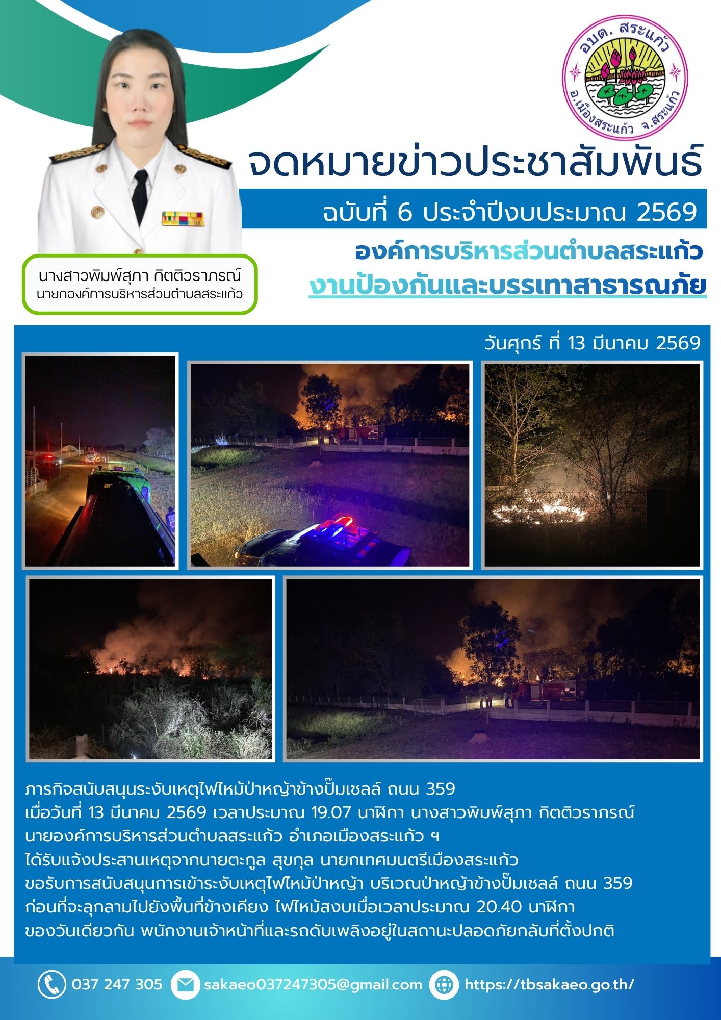 งานป้องกันและบรรเทาสาธารณภัย วันที่ศุกร์ ที่ 13 มีนาคม 2569 |