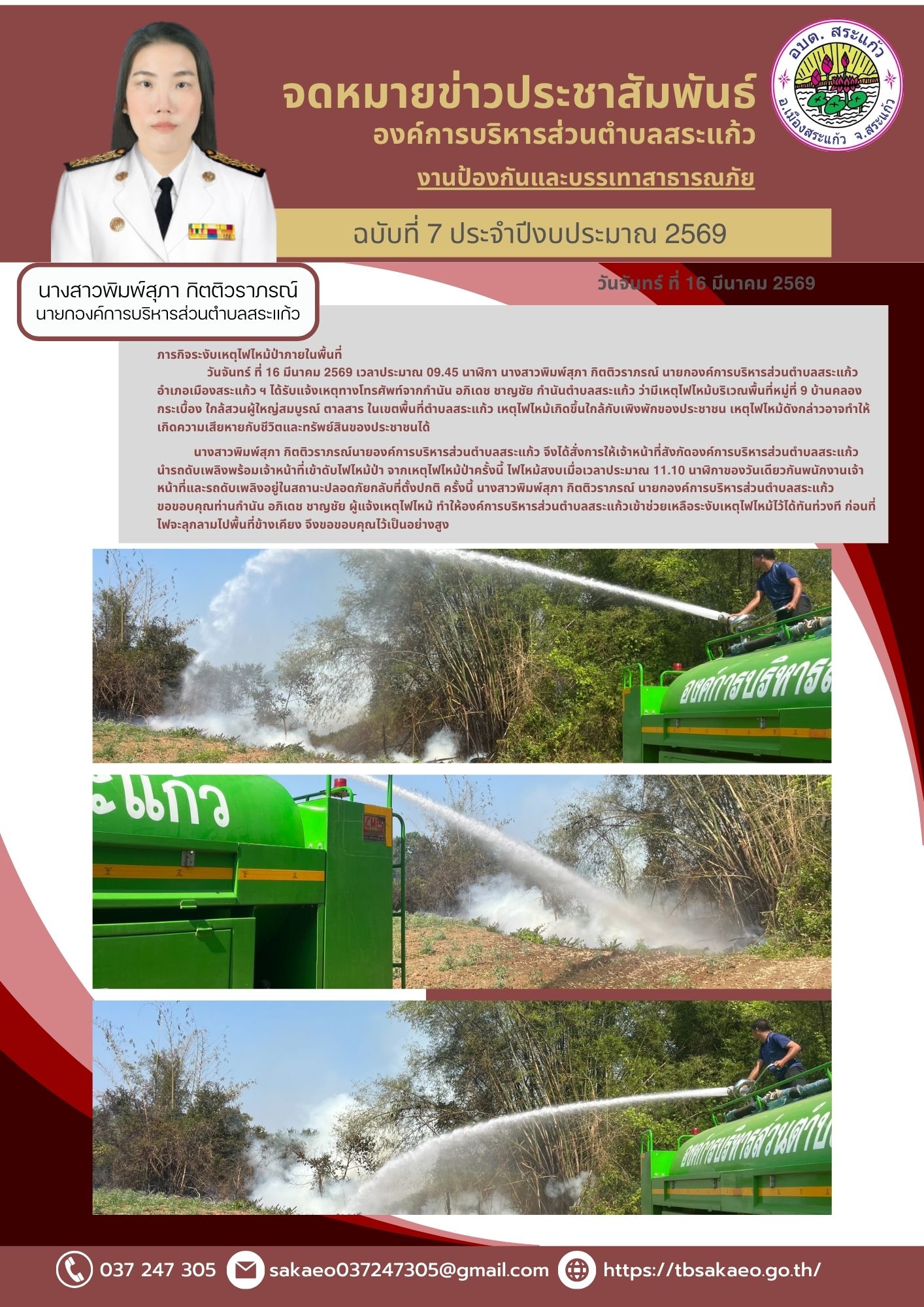 งานป้องกันและบรรเทาสาธารณภัย วันที่จันทร์ ที่ 16 มีนาคม 2569 |