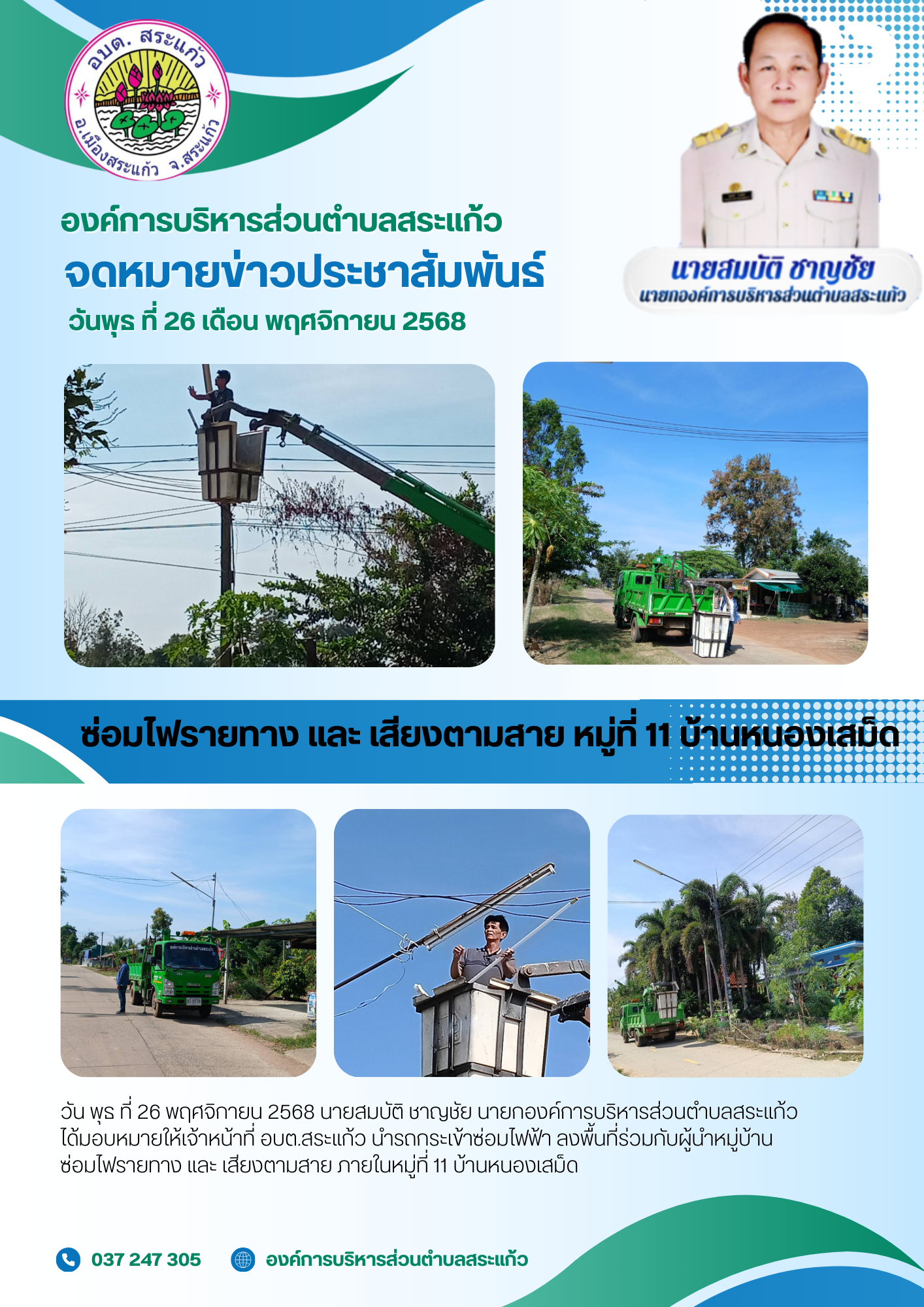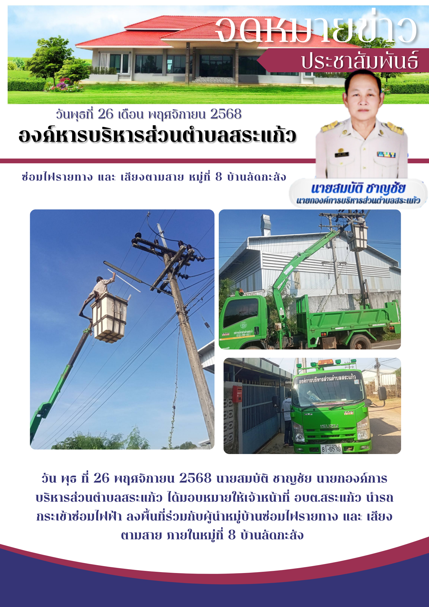 จดหมายข่าวซ่อมไฟฟ้าหมู่ที่ 11 บ้านหนองเสม็ด |