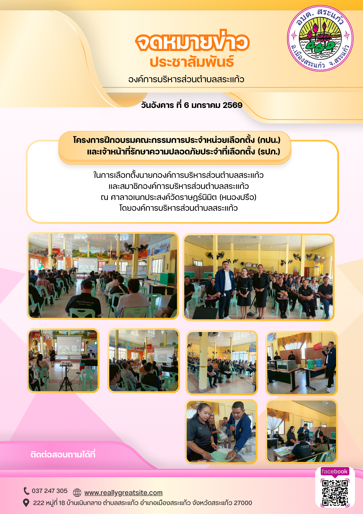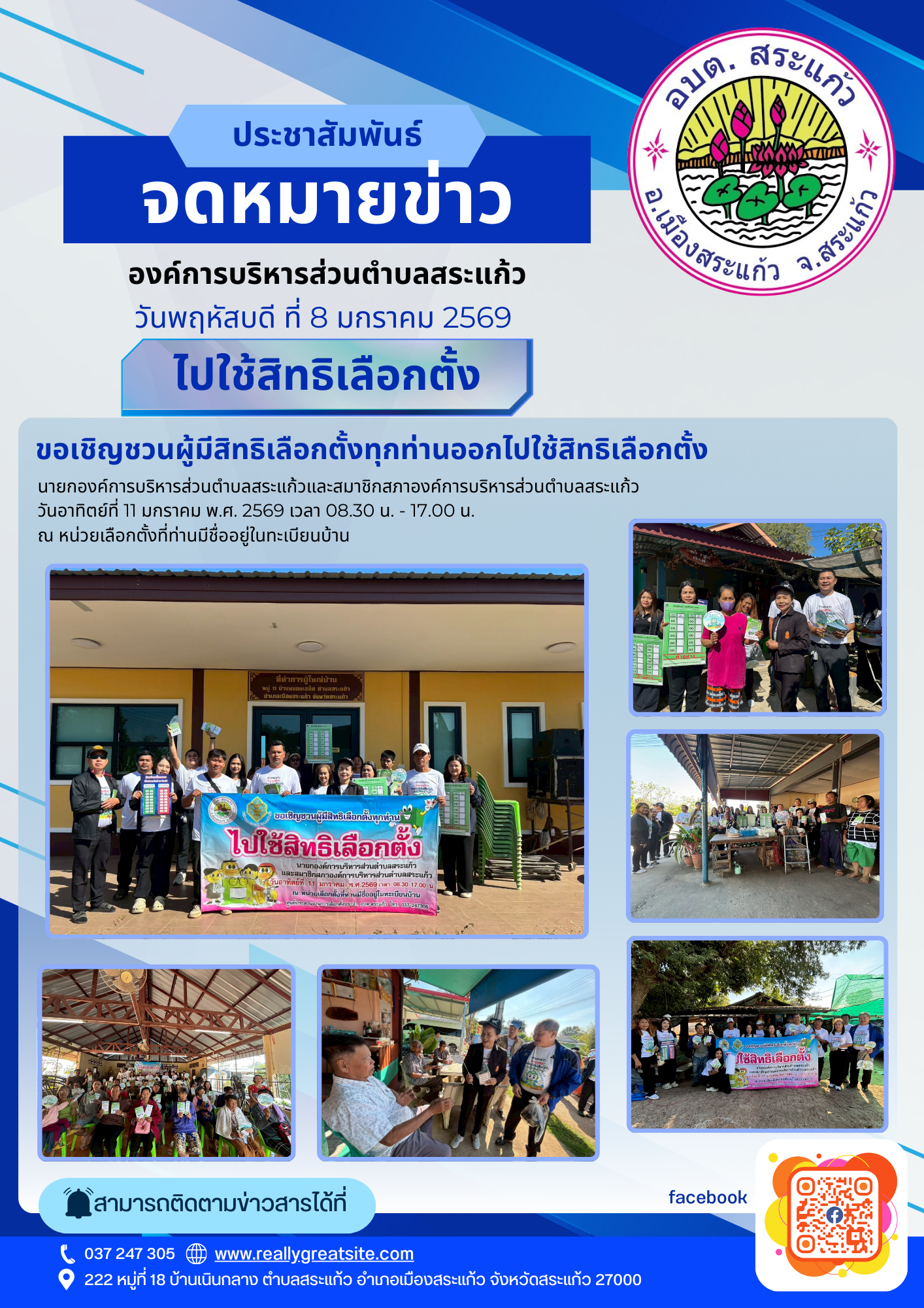 เชิญชวนผู้มีสิทธิออกไปใช้สิทธิเลือกตั้ง ประชาสัมพันธ์ วัน พุธ ที่ 8 มกราคม 2569