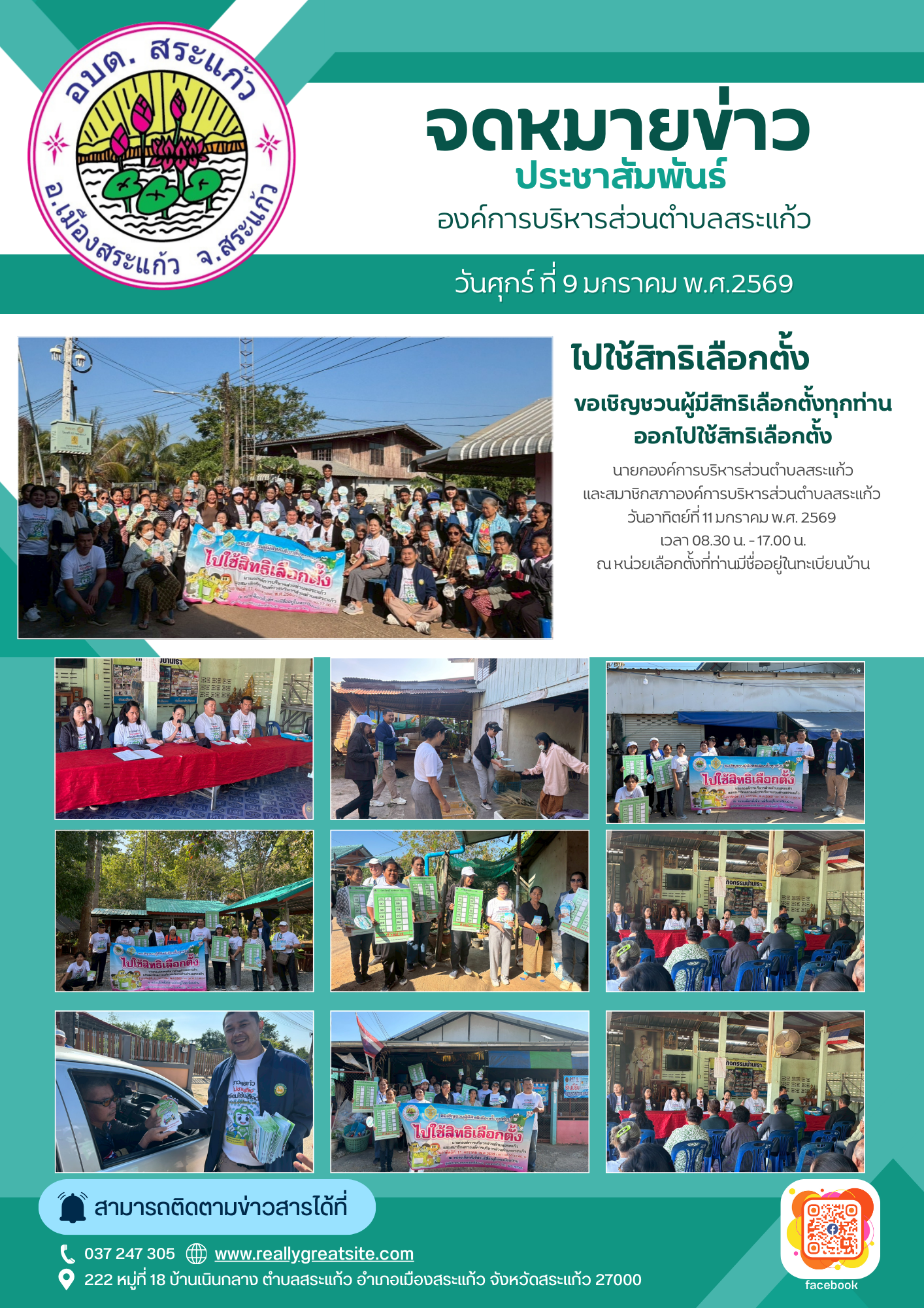 เชิญชวนผู้มีสิทธิออกไปใช้สิทธิเลือกตั้ง ประชาสัมพันธ์ วันพฤหัสบดีที่ 9 มกราคม 2569