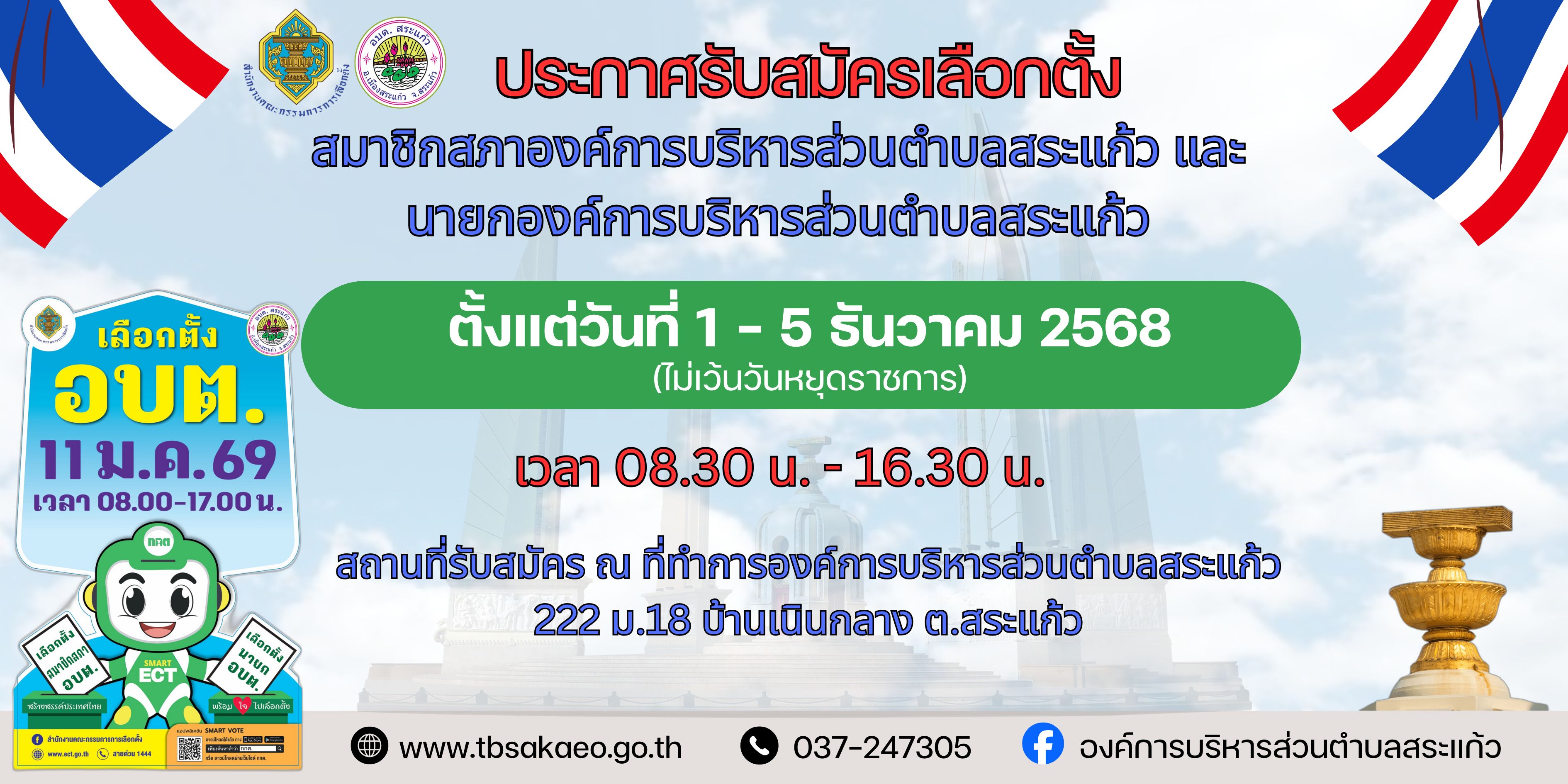 ประชาสัมพันธ์รับสมัครเลือกตั้ง สมาชิก อบต.สระแก้ว และนายก อบต.สระแก้ว |