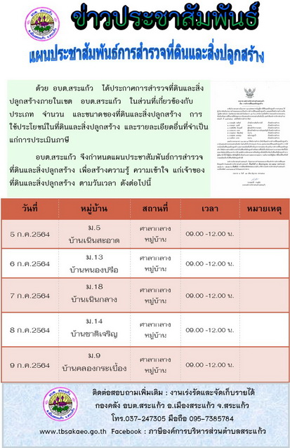 แผนประชาสัมพันธ์การสำรวจที่ดินและสิ่งปลูกสร้าง |