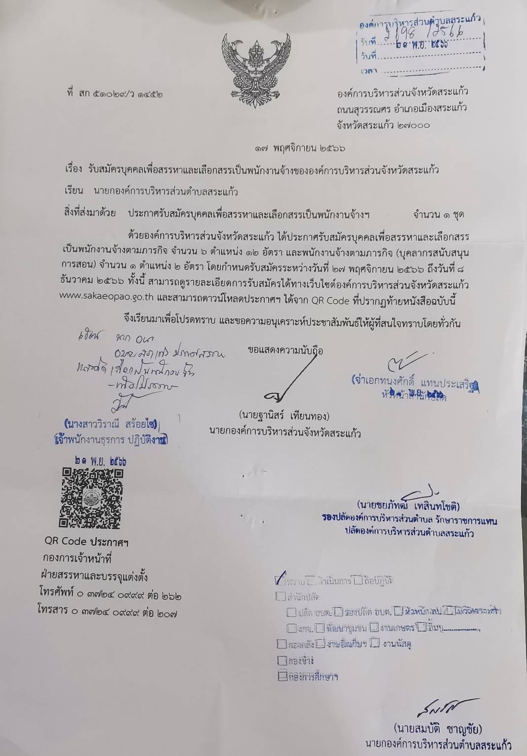 รับสมัครบุคคลเพื่อสรรหาและเลือกสรรเป็นพนักงานจ้างขององ์การบริหารส่วนตำบลสระแก้ว ประจำปีงบประมาณ พ.ศ. 2564 |