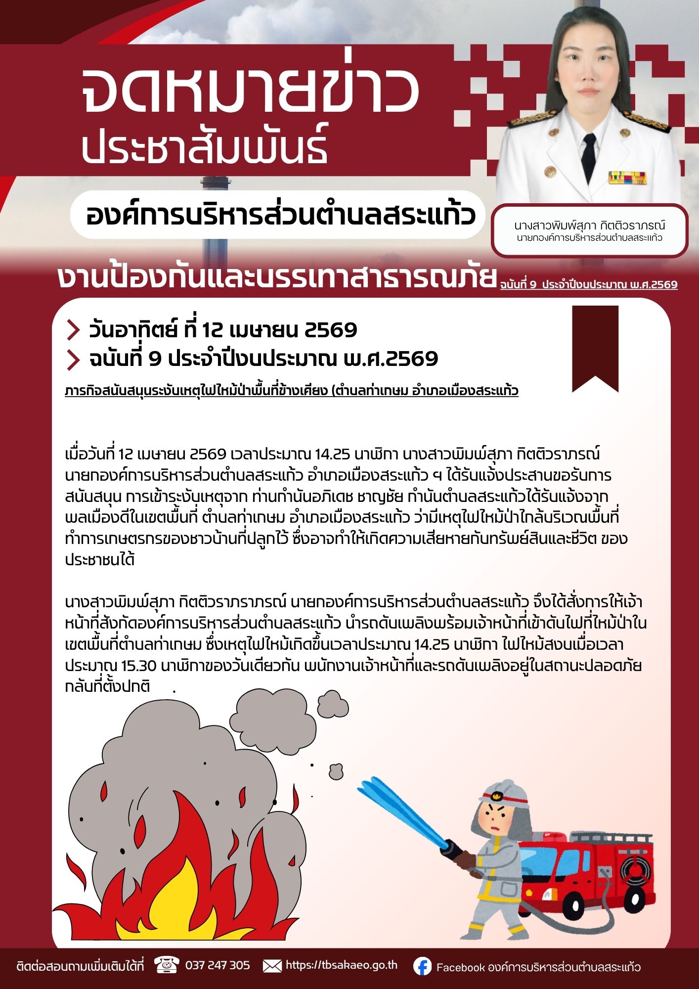 จดหมายข่าวประชาสัมพันธ์ งานป้องกันและบรรเทาสาธารณภัย ฉบับที่ 9 ประจำปีงบประมาณ 2569 ภารกิจสนับสนุนระงับเหตุไฟไหม้ป่าพื้นที่ข้างเคียง