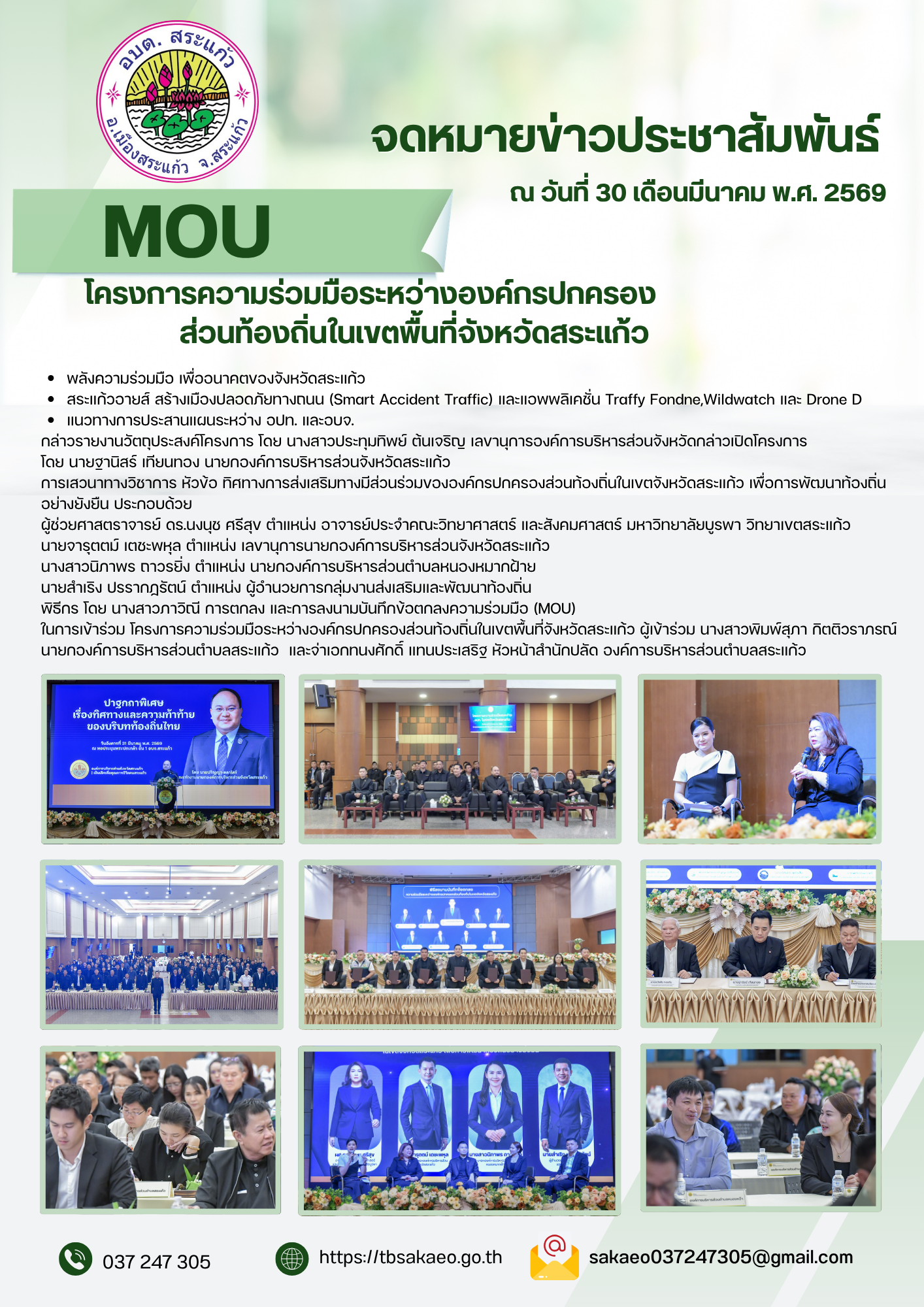 MOU โครงการความร่วมมือระหว่างองค์กรปกครองส่วนท้องถิ่นในเขตพื้นที่จังหวัดสระแก้ว (จดหมายข่าวประชาสัมพันธ์)